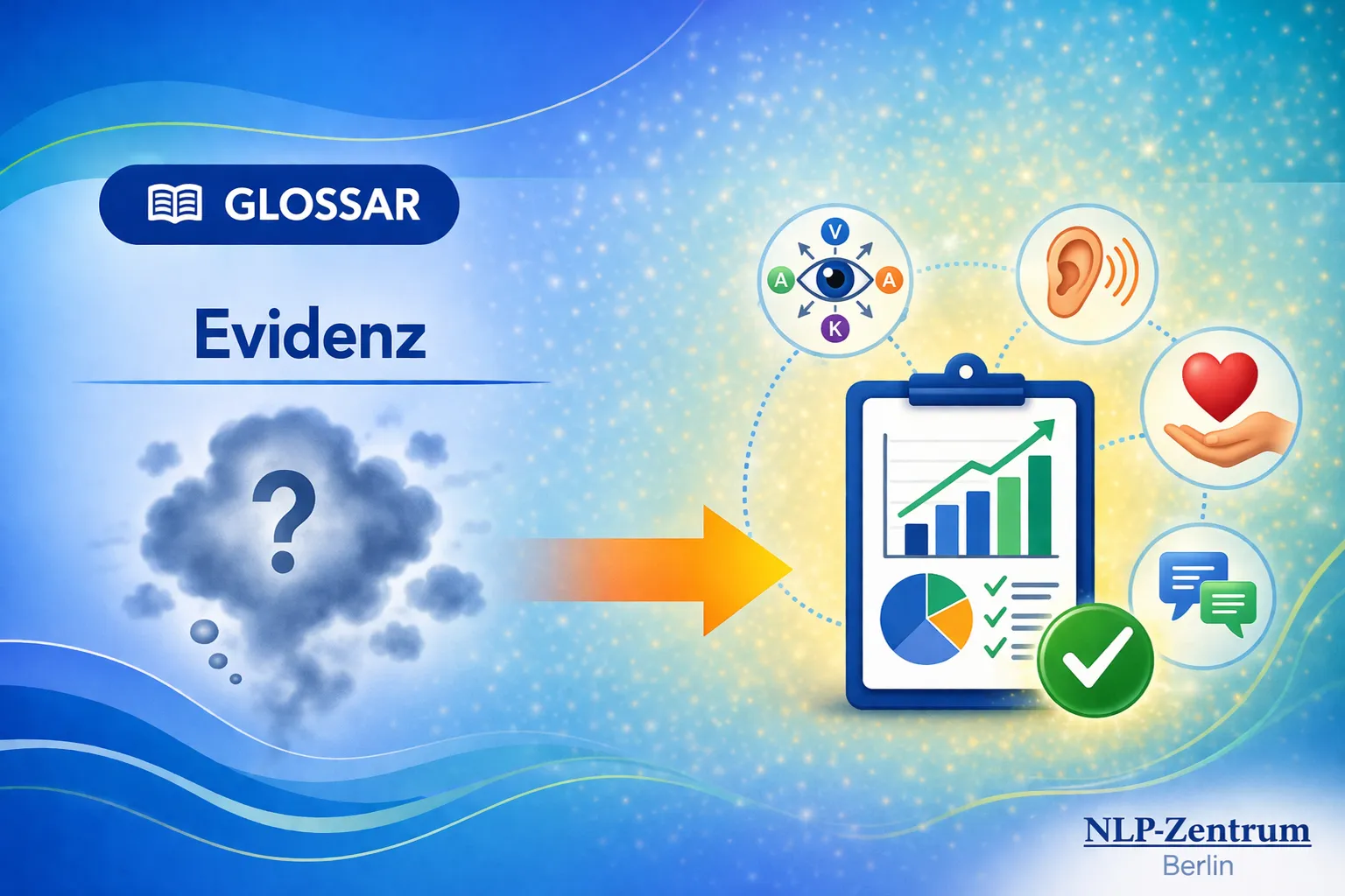 Evidenz bedeutet, dass etwas offensichtlich oder augenscheinlich ist. Im NLP spielt die Evidenz für die Zielkonkretisierung eine wichtige Rolle, gibt sie doch einen Ausschluss über die Zielkriterien.