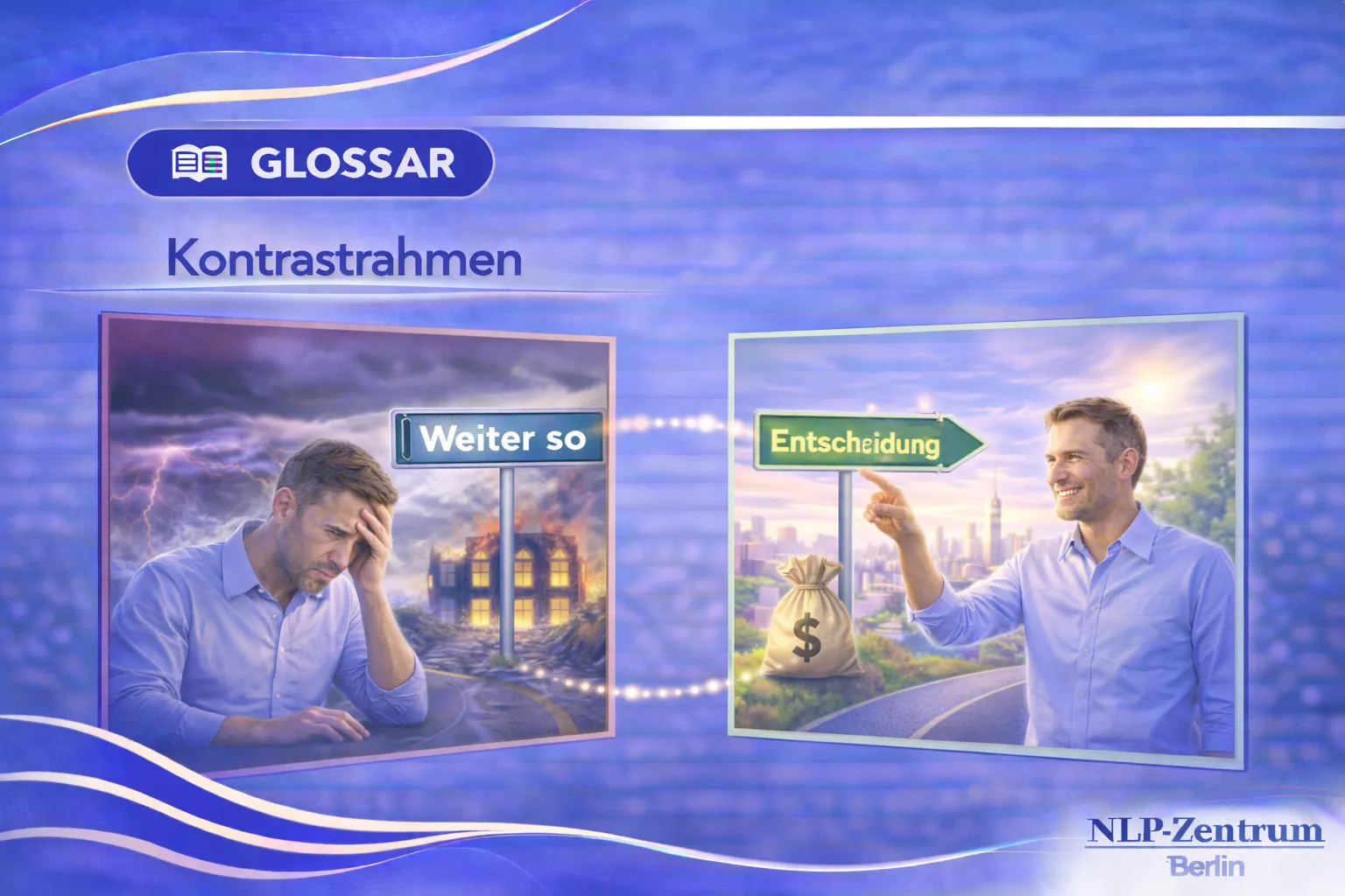Auch bei der Entscheidungs-Timeline liegt ein Kontrastrahmen vor. Es geht um den Kontrast zwischen jetzt und „irgendwann einmal“. Diese Wahrnehmung des Unterschiedes ist für den Coachee eine wertvolle Erfahrung, um sein Ziel genauer zu definieren, Entscheidungen zu treffen und in Konsequenzen hinein zu spüren.